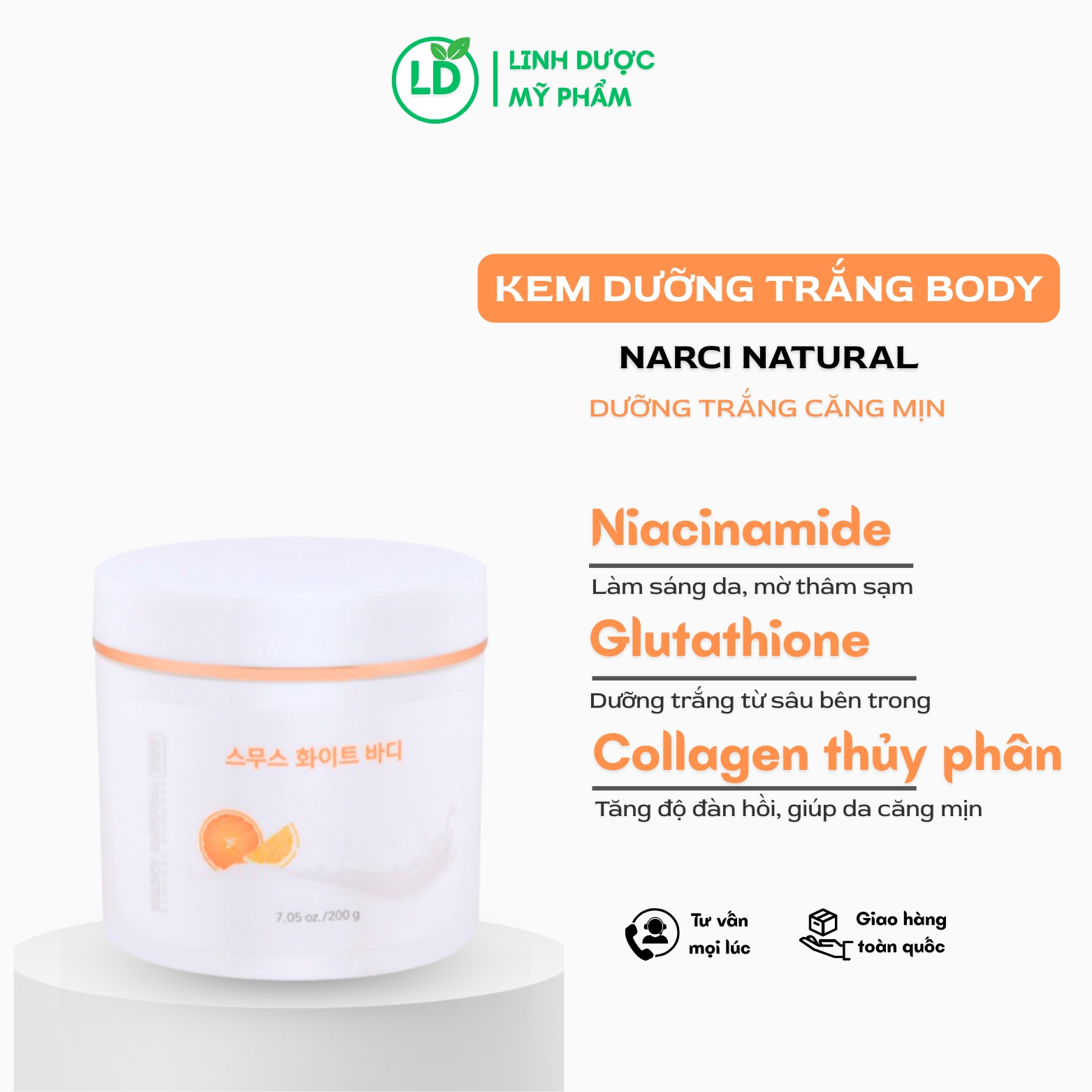 Kem dưỡng trắng da body cam sữa Narci dưỡng trắng da, làm mềm mịn, ngừa lão hóa